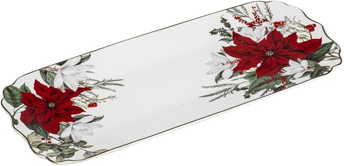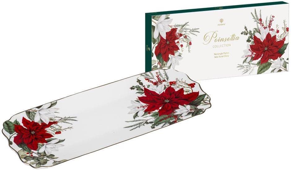 Entertain with elegance this Christmas with our stunning Poinsettia White Rectangular Platter.